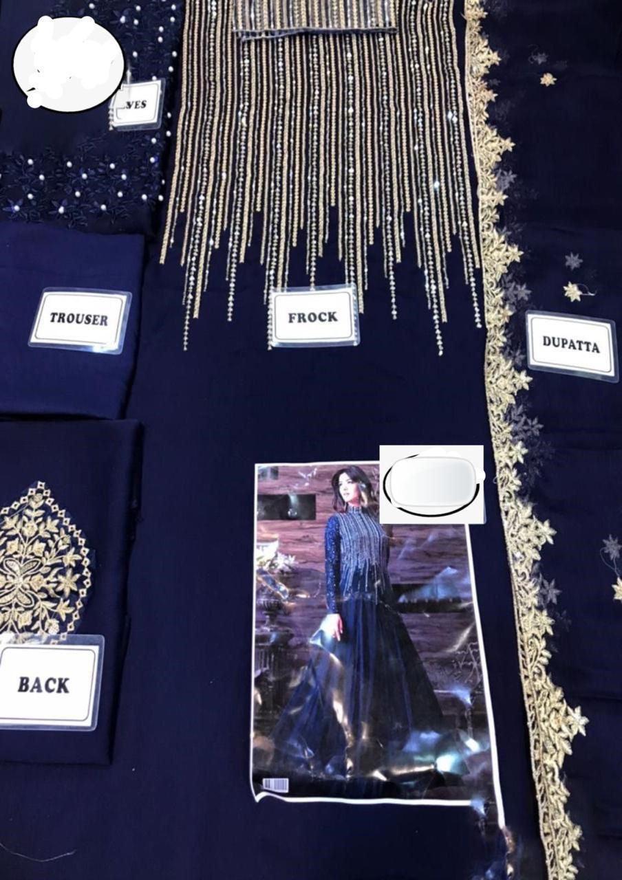 Luxurious and dashing Indian Chiffon Navy Blue Maxi
