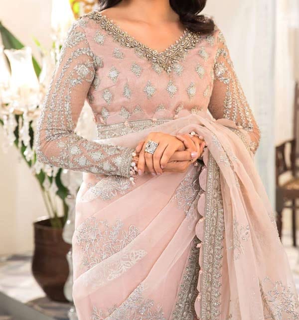Experience pure elegance with this luxurious saree outfit from wedding Collection. Crafted with net fabric and delicate spengle embroidery, this ensemble is a perfect blend of glamour and sophistication, designed to make you stand out in festive gatherings.