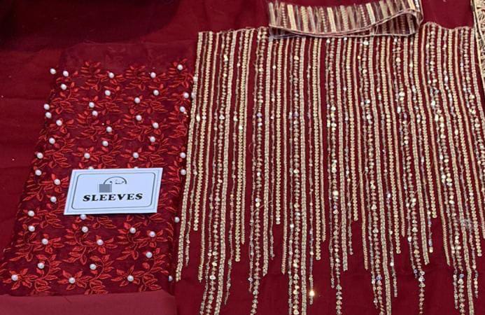 Sleeves: Sequence & Thread Embroidery with Pearl Hand Work on Chiffon
