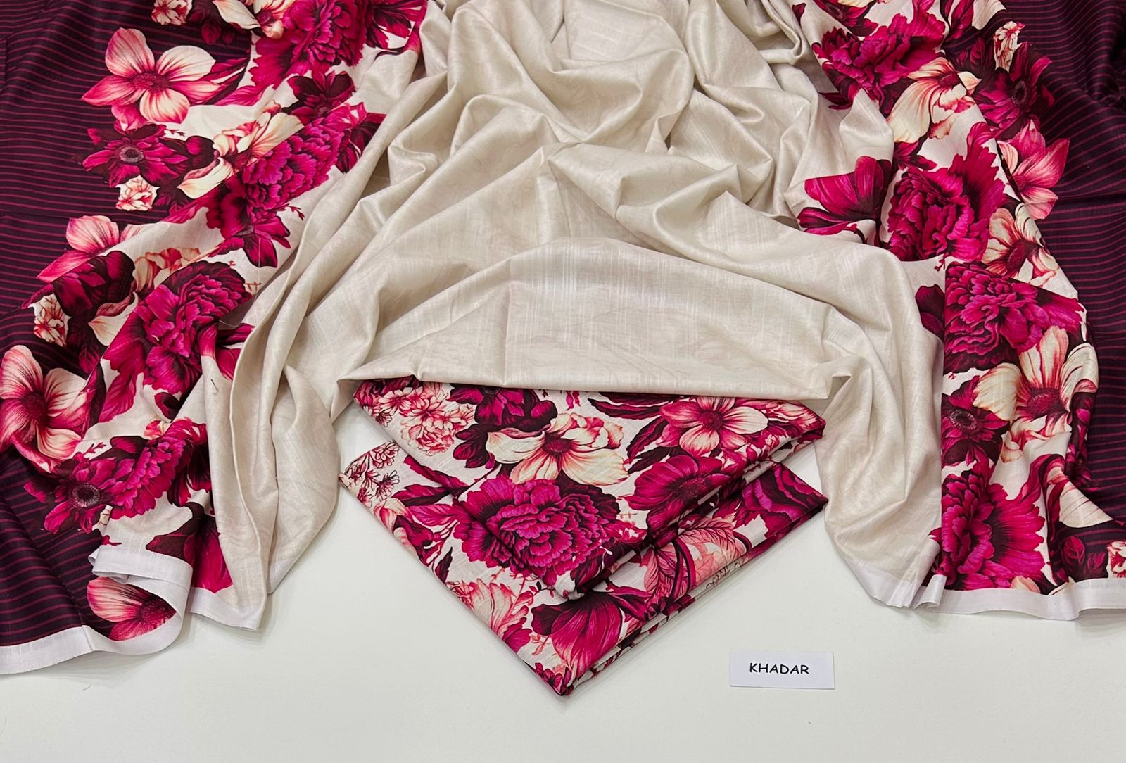 • Dupatta (Khaddar): Digital printed soft khaddar dupatta adding graceful finishing